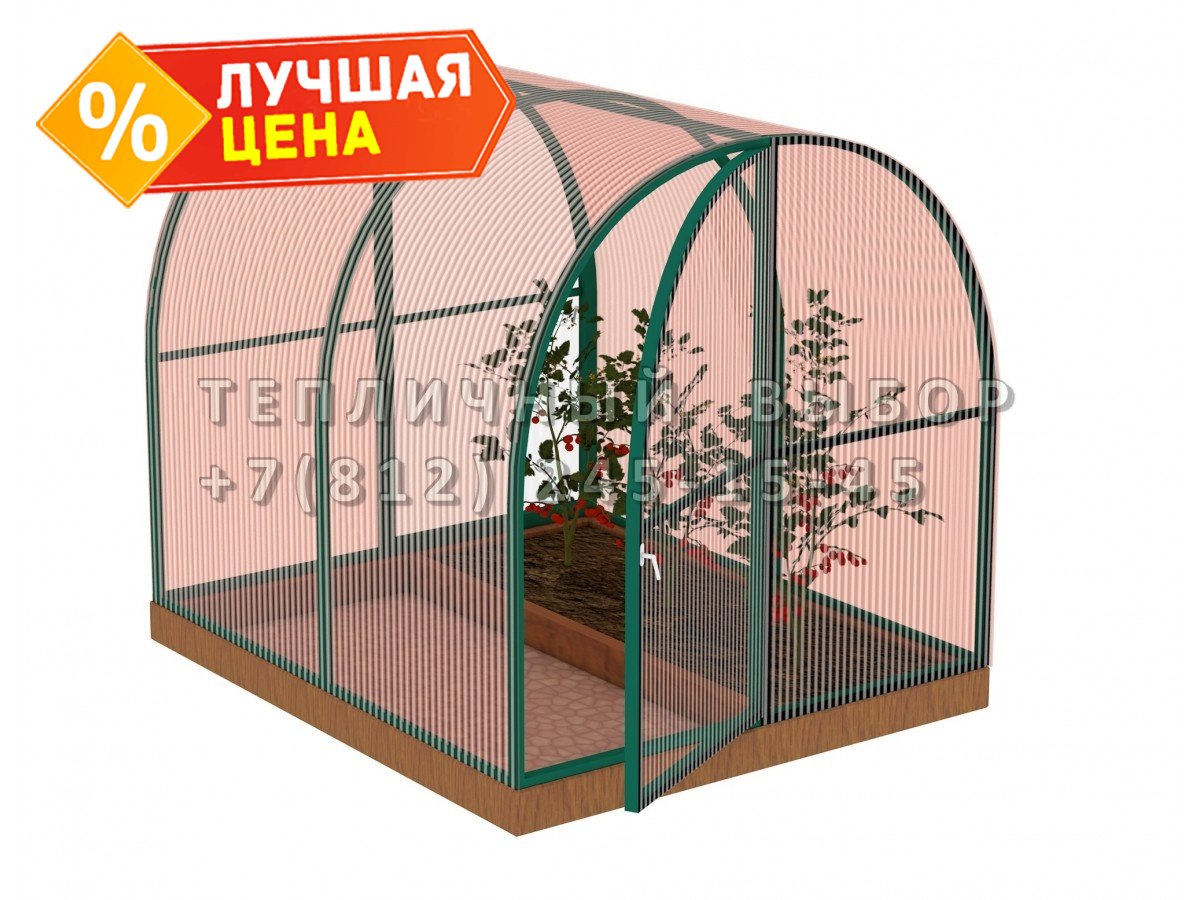 Теплица из поликарбоната-фито Арочная 1,6х2 h=1.68 м профиль 20х20 мм Зеленый