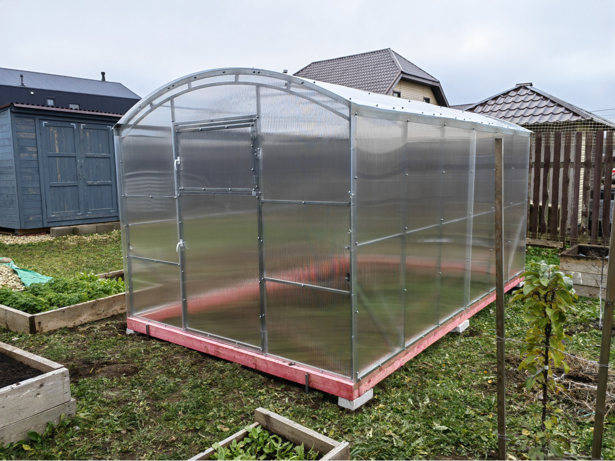 Возможна самостоятельная сборка по подробной инструкции. Сборка теплицы монтажниками-профессионалами компании занимает порядка 3 часов. В качестве основания рекомендуется использовать бетонный, либо деревянный фундамент из бруса. Предварительно брус необходимо обработать антисептиком.